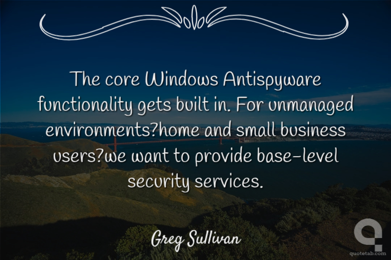 The core Windows Antispyware functionality gets built in. For unmanaged environments?home and small business users?we want to provide base-level security services.