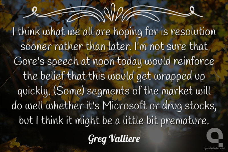 I think what we all are hoping for is resolution sooner rather than later. I'm not sure that Gore's speech at noon today would reinforce the belief that this would get wrapped up quickly. (Some) segments of the market will do well whether it's Microsoft or drug stocks, but I think it might be a little bit premature.
