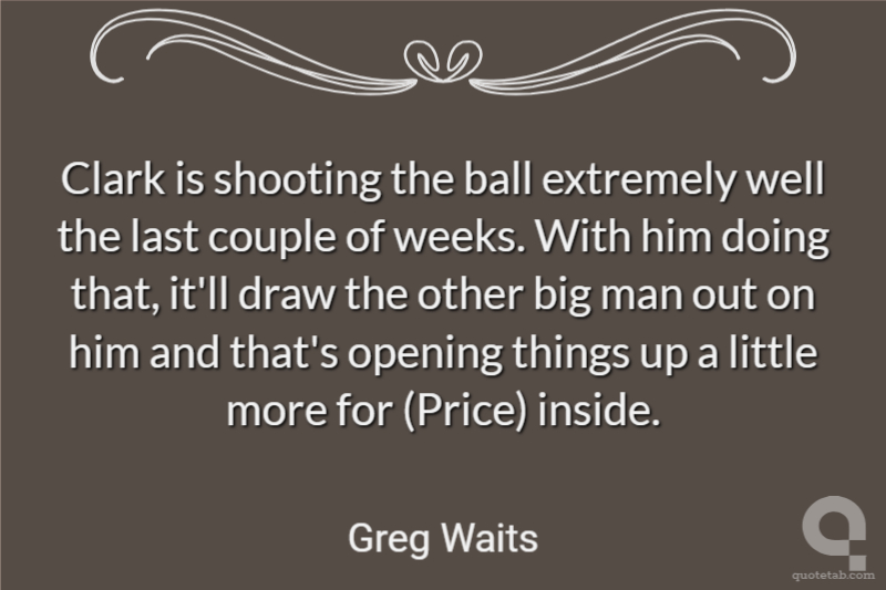 Clark is shooting the ball extremely well the last couple of weeks. With him doing that, it'll draw the other big man out on him and that's opening things up a little more for (Price) inside.