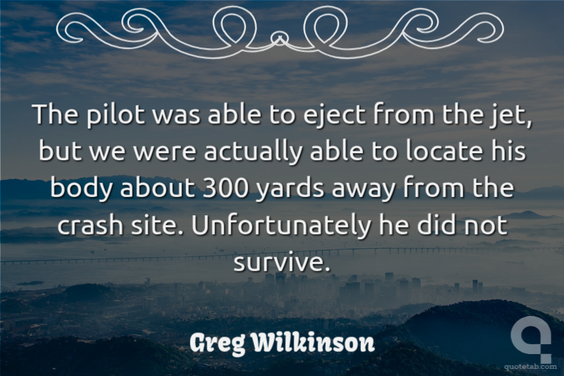 The pilot was able to eject from the jet, but we were actually able to locate his body about 300 yards away from the crash site. Unfortunately he did not survive.