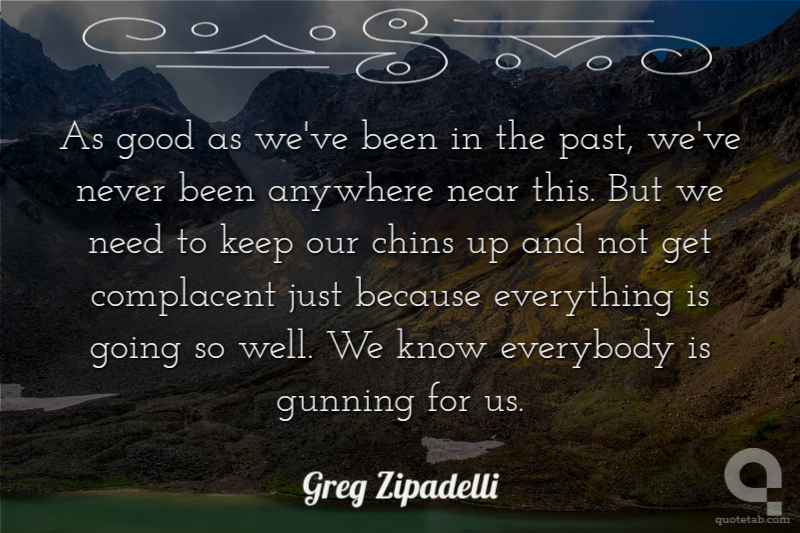 As good as we've been in the past, we've never been anywhere near this. But we need to keep our chins up and not get complacent just because everything is going so well. We know everybody is gunning for us.