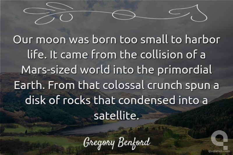 Our moon was born too small to harbor life. It came from the collision of a Mars-sized world into the primordial Earth. From that colossal crunch spun a disk of rocks that condensed into a satellite.