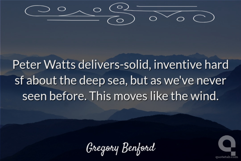 Peter Watts delivers-solid, inventive hard sf about the deep sea, but as we've never seen before. This moves like the wind.