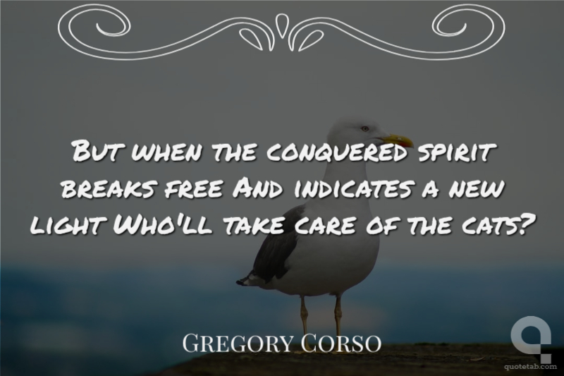 But when the conquered spirit breaks free And indicates a new light Who'll take care of the cats?