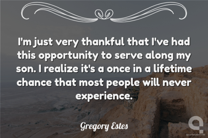 I'm just very thankful that I've had this opportunity to serve along my son. I realize it's a once in a lifetime chance that most people will never experience.