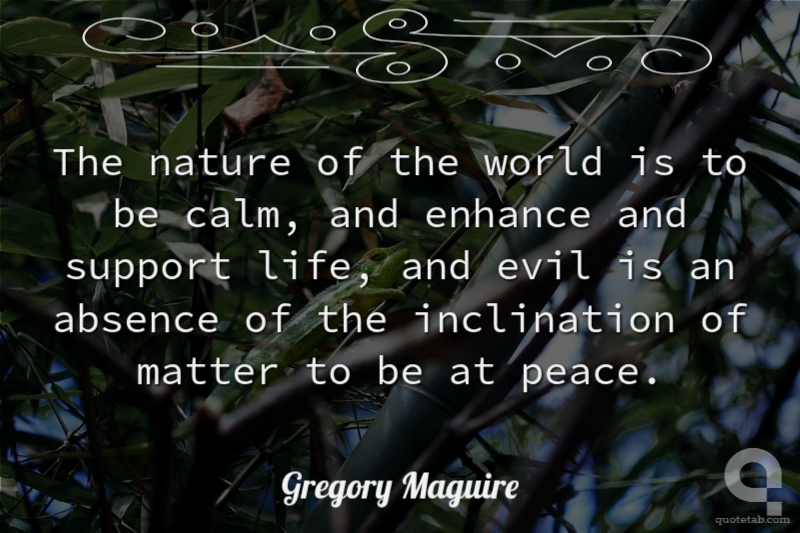 The nature of the world is to be calm, and enhance and support life, and evil is an absence of the inclination of matter to be at peace.