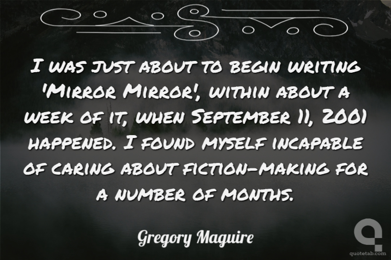 I was just about to begin writing 'Mirror Mirror', within about a week of it, when September 11, 2001 happened. I found myself incapable of caring about fiction-making for a number of months.