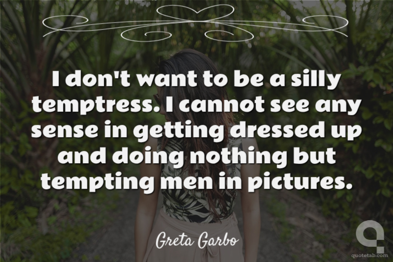 I don't want to be a silly temptress. I cannot see any sense in getting dressed up and doing nothing but tempting men in pictures.
