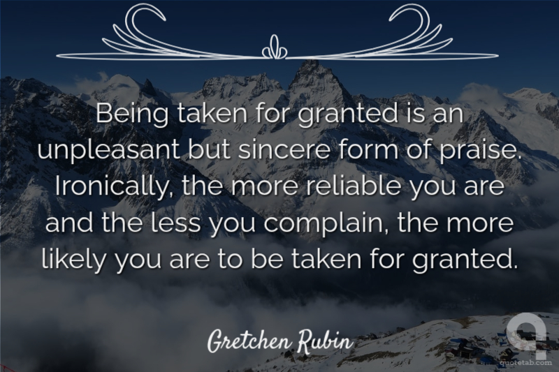 Being taken for granted is an unpleasant but sincere form of praise. Ironically, the more reliable you are and the less you complain, the more likely you are to be taken for granted.