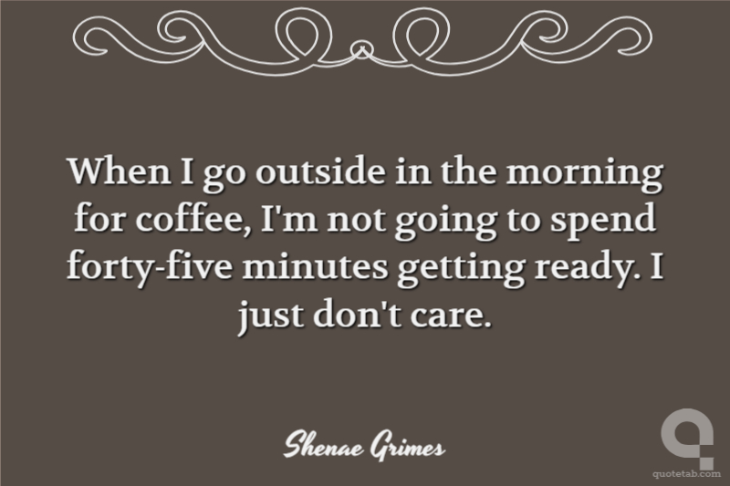 When I go outside in the morning for coffee, I'm not going to spend forty-five minutes getting ready. I just don't care.