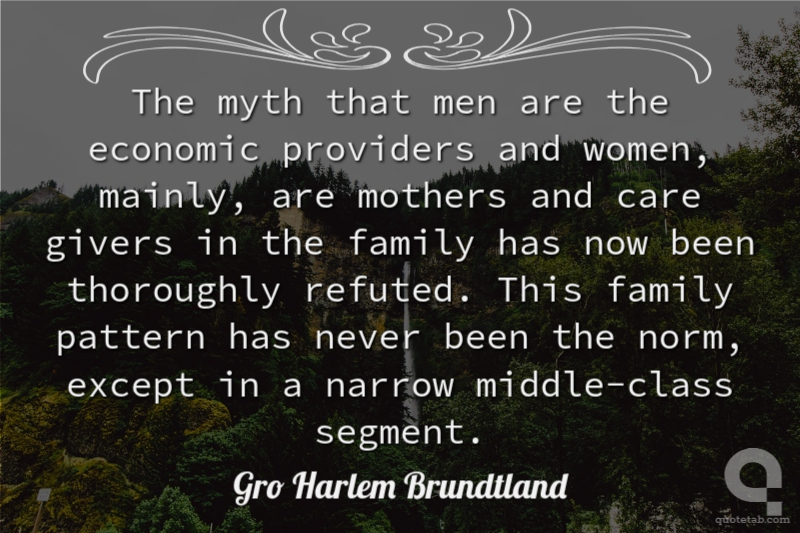 The myth that men are the economic providers and women, mainly, are mothers and care givers in the family has now been thoroughly refuted. This family pattern has never been the norm, except in a narrow middle-class segment.