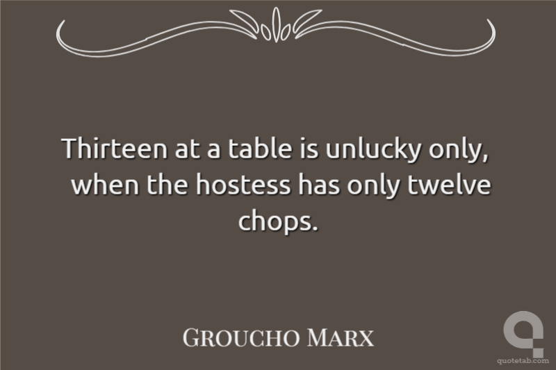 Thirteen at a table is unlucky only, when the hostess has only twelve chops.