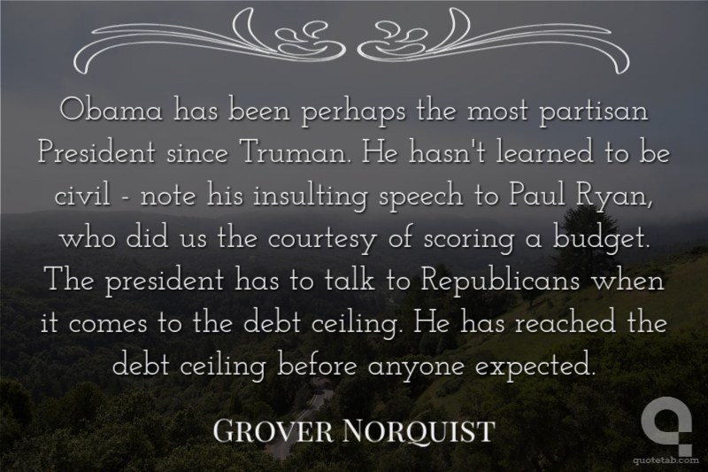 Grover Glenn Norquistis an American political advocate who is founder and president of Americans for Tax Reform, an organization that opposes all tax increases, and a co-founder of the Islamic Free Market Institute. A Republican, he is the primary promoter of the "Taxpayer Protection Pledge," a pledge signed by lawmakers who agree to oppose increases in marginal income tax rates for individuals and businesses, as well as net reductions or eliminations of deductions and credits without a matching reduced tax...