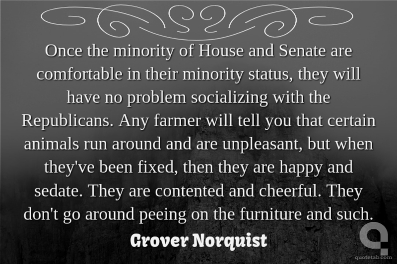 Once the minority of House and Senate are comfortable in their minority status, they will have no problem socializing with the Republicans. Any farmer will tell you that certain animals run around and are unpleasant, but when they've been fixed, then they are happy and sedate. They are contented and cheerful. They don't go around peeing on the furniture and such.