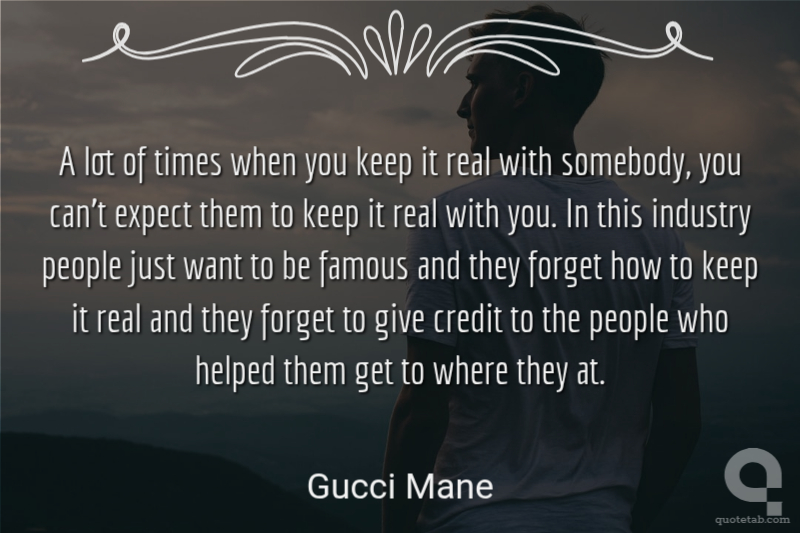 A lot of times when you keep it real with somebody, you can't expect them to keep it real with you. In this industry people just want to be famous and they forget how to keep it real and they forget to give credit to the people who helped them get to where they at.