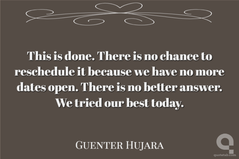 This is done. There is no chance to reschedule it because we have no more dates open. There is no better answer. We tried our best today.