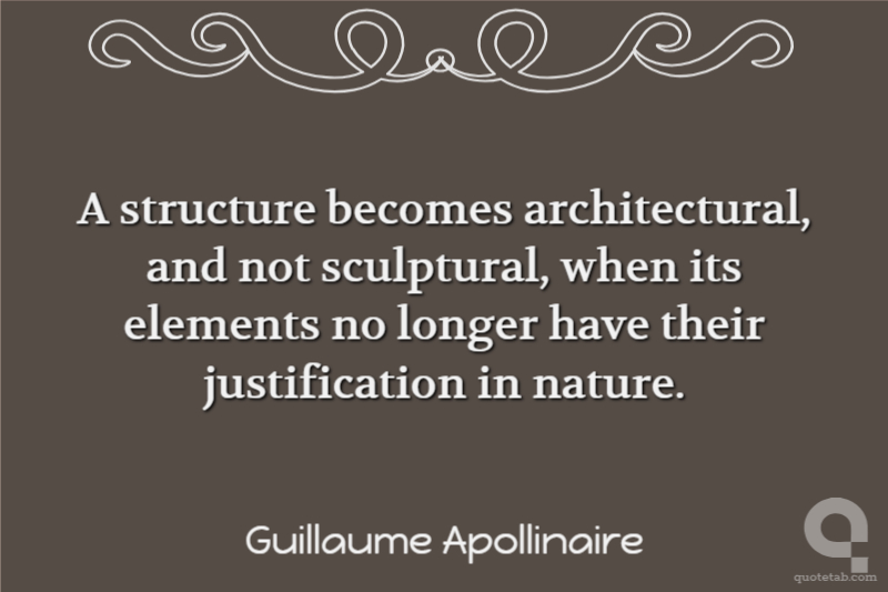 A structure becomes architectural, and not sculptural, when its elements no longer have their justification in nature.
