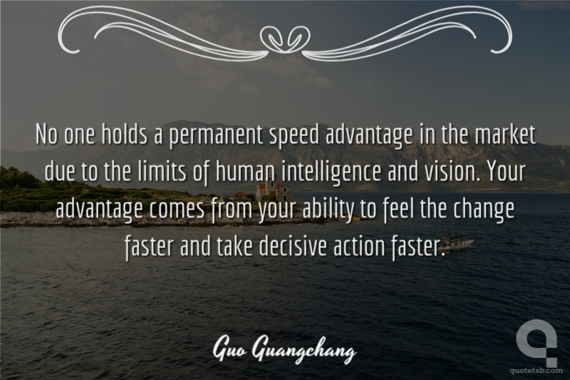 No one holds a permanent speed advantage in the market due to the limits of human intelligence and vision. Your advantage comes from your ability to feel the change faster and take decisive action faster.