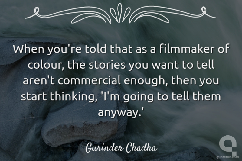 When you're told that as a filmmaker of colour, the stories you want to tell aren't commercial enough, then you start thinking, 'I'm going to tell them anyway.'
