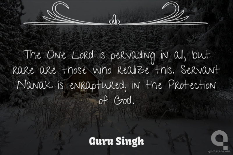 The One Lord is pervading in all, but rare are those who realize this. Servant Nanak is enraptured, in the Protection of God.