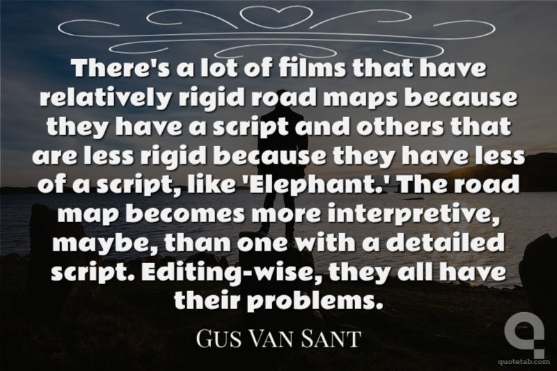 There's a lot of films that have relatively rigid road maps because they have a script and others that are less rigid because they have less of a script, like 'Elephant.' The road map becomes more interpretive, maybe, than one with a detailed script. Editing-wise, they all have their problems.