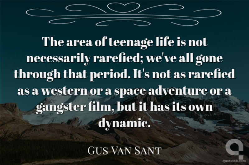 The area of teenage life is not necessarily rarefied; we've all gone through that period. It's not as rarefied as a western or a space adventure or a gangster film, but it has its own dynamic.