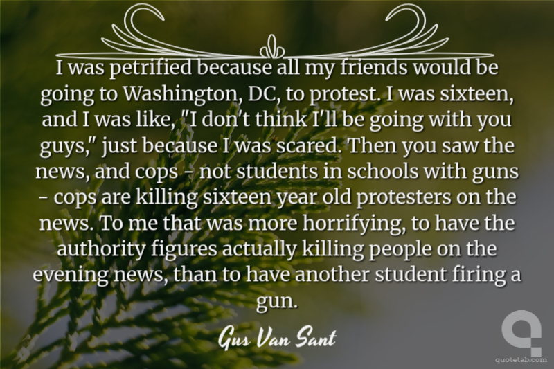 I was petrified because all my friends would be going to Washington, DC, to protest. I was sixteen, and I was like, "I don't think I'll be going with you guys," just because I was scared. Then you saw the news, and cops - not students in schools with guns - cops are killing sixteen year old protesters on the news. To me that was more horrifying, to have the authority figures actually killing people on the evening news, than to have another student firing a gun.