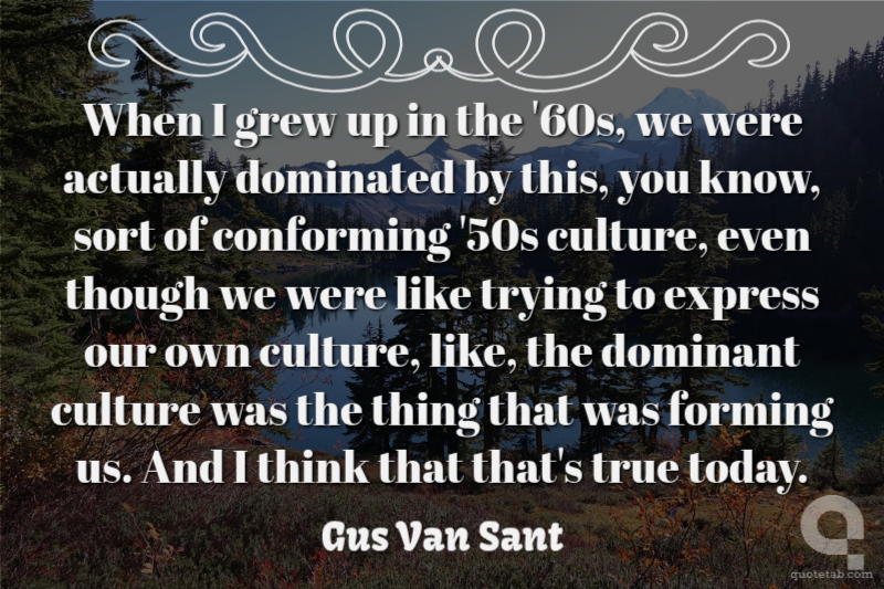 When I grew up in the '60s, we were actually dominated by this, you know, sort of conforming '50s culture, even though we were like trying to express our own culture, like, the dominant culture was the thing that was forming us. And I think that that's true today.