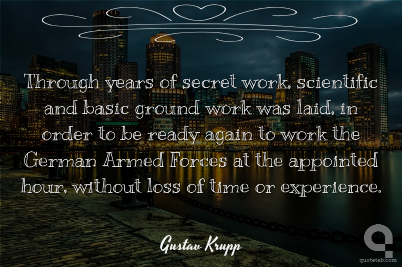 Through years of secret work, scientific and basic ground work was laid, in order to be ready again to work the German Armed Forces at the appointed hour, without loss of time or experience.