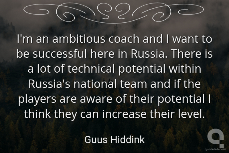 I'm an ambitious coach and I want to be successful here in Russia. There is a lot of technical potential within Russia's national team and if the players are aware of their potential I think they can increase their level.