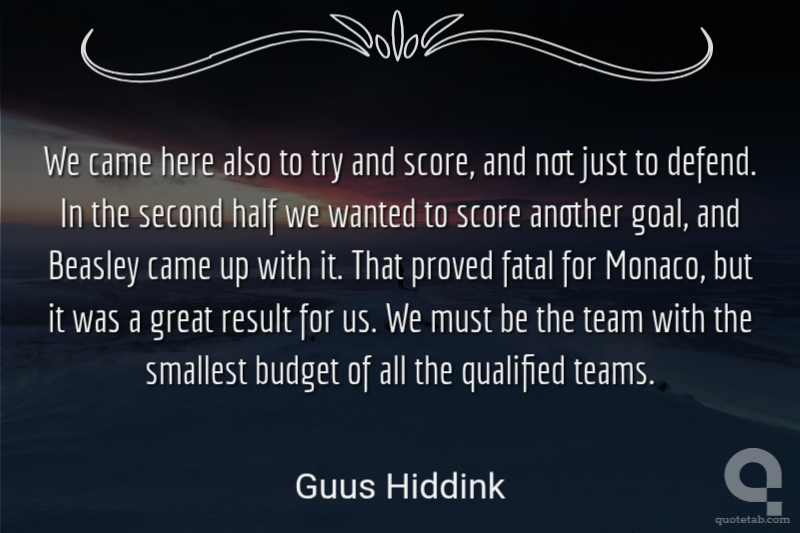 We came here also to try and score, and not just to defend. In the second half we wanted to score another goal, and Beasley came up with it. That proved fatal for Monaco, but it was a great result for us. We must be the team with the smallest budget of all the qualified teams.