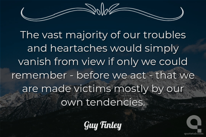 The vast majority of our troubles and heartaches would simply vanish from view if only we could remember - before we act - that we are made victims mostly by our own tendencies.