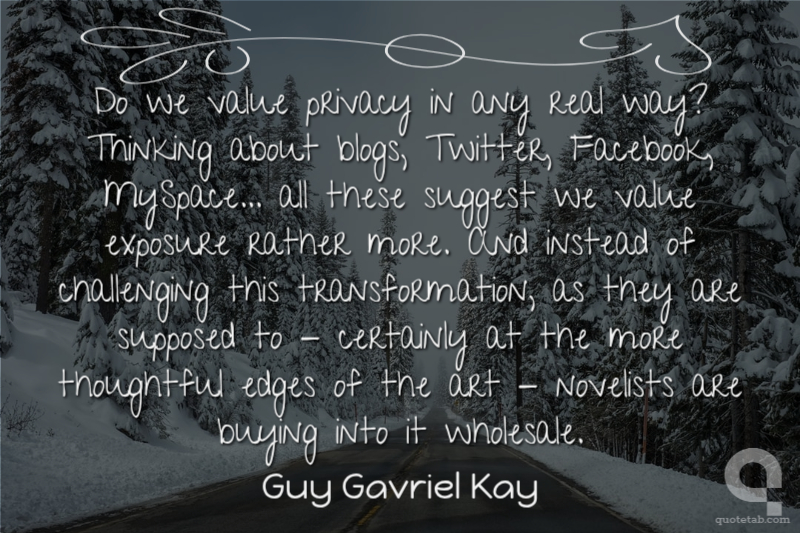Do we value privacy in any real way? Thinking about blogs, Twitter, Facebook, MySpace... all these suggest we value exposure rather more. And instead of challenging this transformation, as they are supposed to - certainly at the more thoughtful edges of the art - novelists are buying into it wholesale.