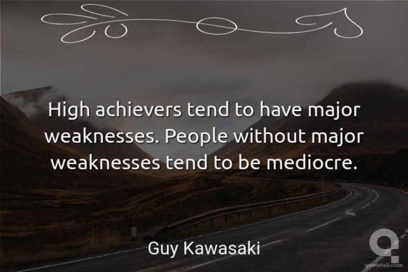 High achievers tend to have major weaknesses. People without major weaknesses tend to be mediocre.