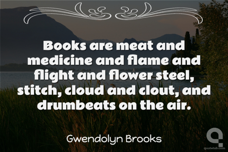 Books are meat and medicine and flame and flight and flower steel, stitch, cloud and clout, and drumbeats on the air.