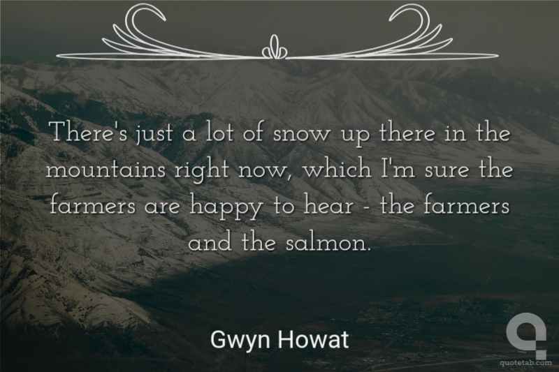 There's just a lot of snow up there in the mountains right now, which I'm sure the farmers are happy to hear - the farmers and the salmon.