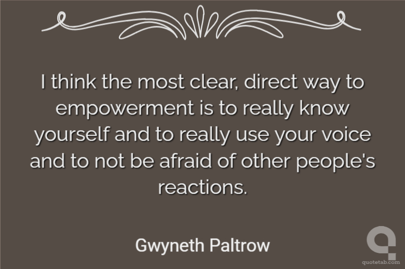 I think the most clear, direct way to empowerment is to really know yourself and to really use your voice and to not be afraid of other people's reactions.