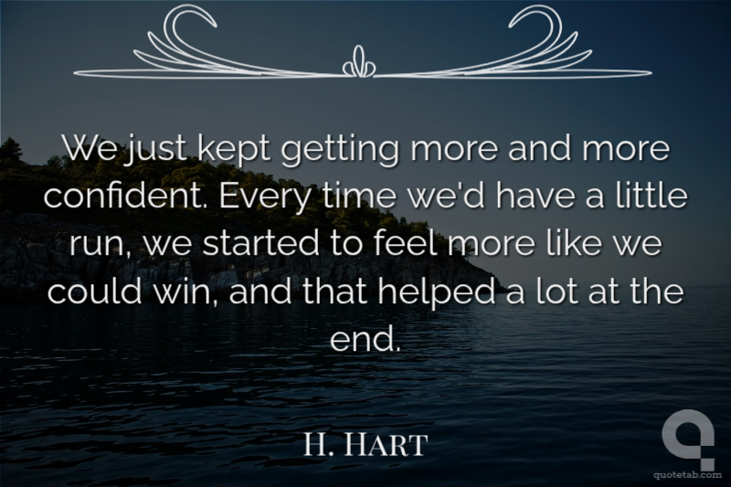 We just kept getting more and more confident. Every time we'd have a little run, we started to feel more like we could win, and that helped a lot at the end.