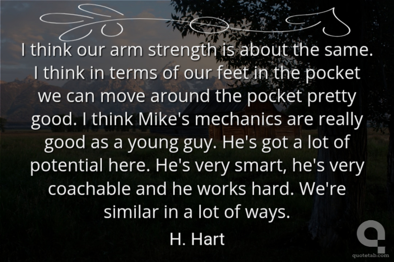 I think our arm strength is about the same. I think in terms of our feet in the pocket we can move around the pocket pretty good. I think Mike's mechanics are really good as a young guy. He's got a lot of potential here. He's very smart, he's very coachable and he works hard. We're similar in a lot of ways.