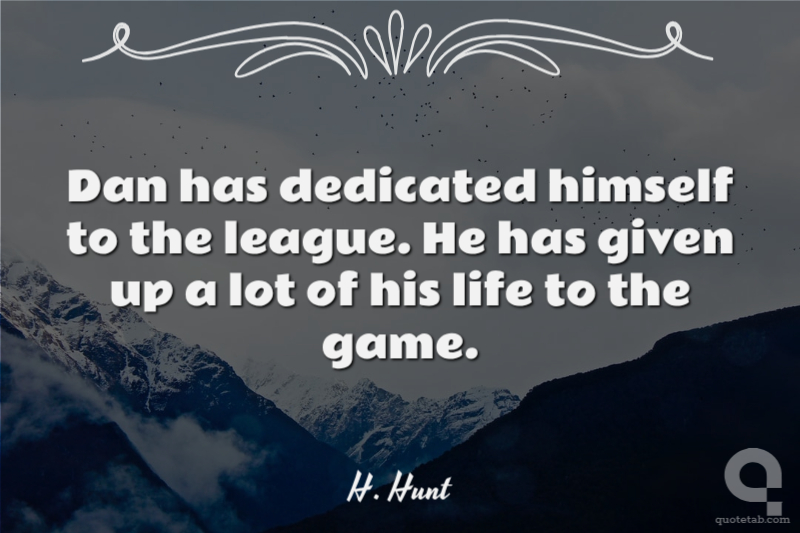 Dan has dedicated himself to the league. He has given up a lot of his life to the game.