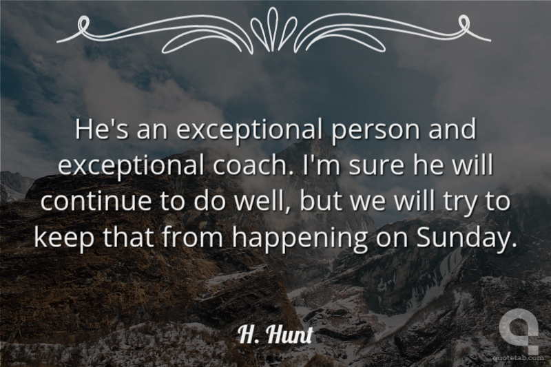 He's an exceptional person and exceptional coach. I'm sure he will continue to do well, but we will try to keep that from happening on Sunday.