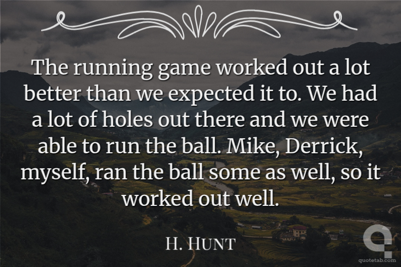 The running game worked out a lot better than we expected it to. We had a lot of holes out there and we were able to run the ball. Mike, Derrick, myself, ran the ball some as well, so it worked out well.