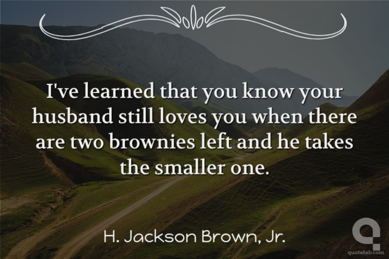 I've learned that you know your husband still loves you when there are two brownies left and he takes the smaller one.