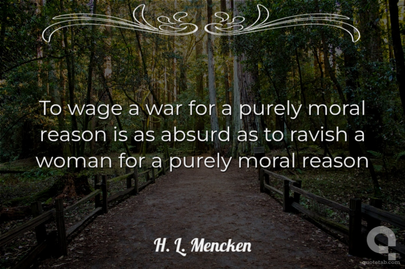 To wage a war for a purely moral reason is as absurd as to ravish a woman for a purely moral reason