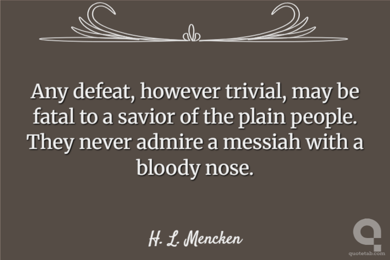 Any defeat, however trivial, may be fatal to a savior of the plain people. They never admire a messiah with a bloody nose.