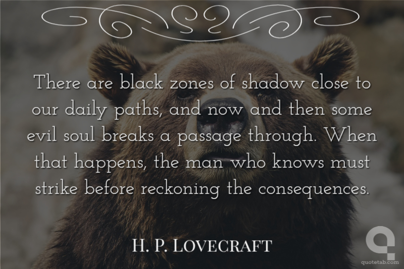 There are black zones of shadow close to our daily paths, and now and then some evil soul breaks a passage through. When that happens, the man who knows must strike before reckoning the consequences.