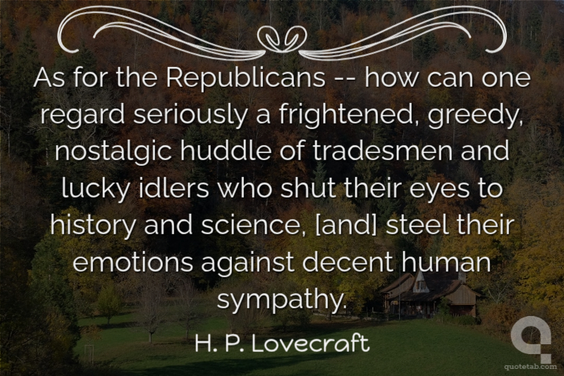 As for the Republicans -- how can one regard seriously a frightened, greedy, nostalgic huddle of tradesmen and lucky idlers who shut their eyes to history and science, [and] steel their emotions against decent human sympathy.