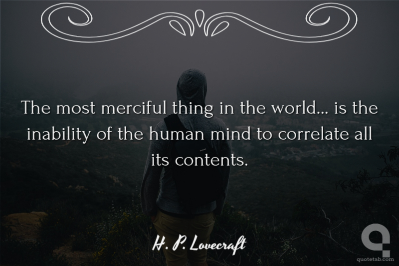 The most merciful thing in the world... is the inability of the human mind to correlate all its contents.