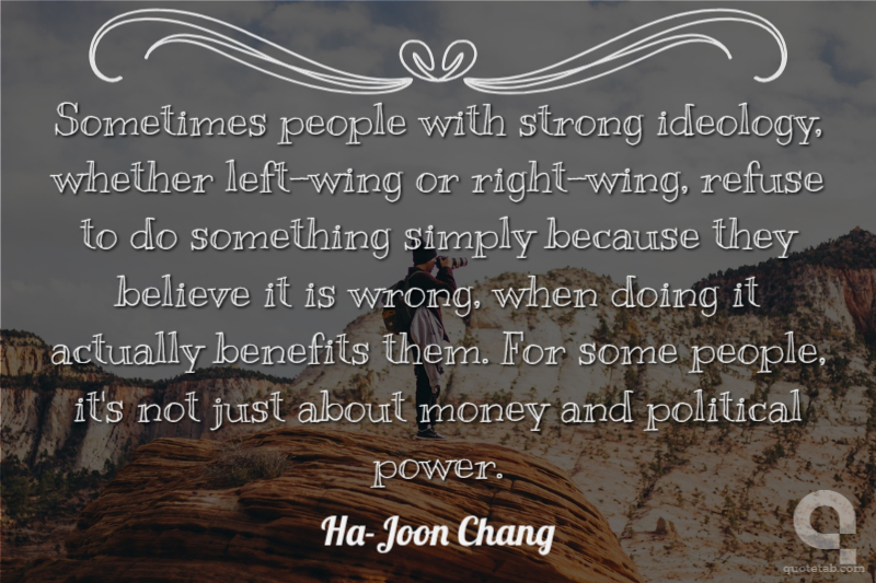 Sometimes people with strong ideology, whether left-wing or right-wing, refuse to do something simply because they believe it is wrong, when doing it actually benefits them. For some people, it's not just about money and political power.