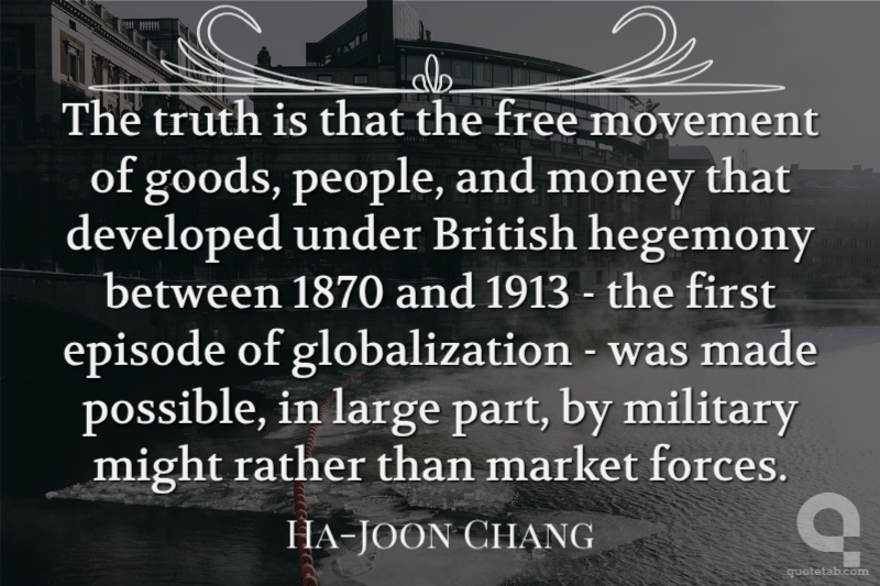 The truth is that the free movement of goods, people, and money that developed under British hegemony between 1870 and 1913 - the first episode of globalization - was made possible, in large part, by military might rather than market forces.